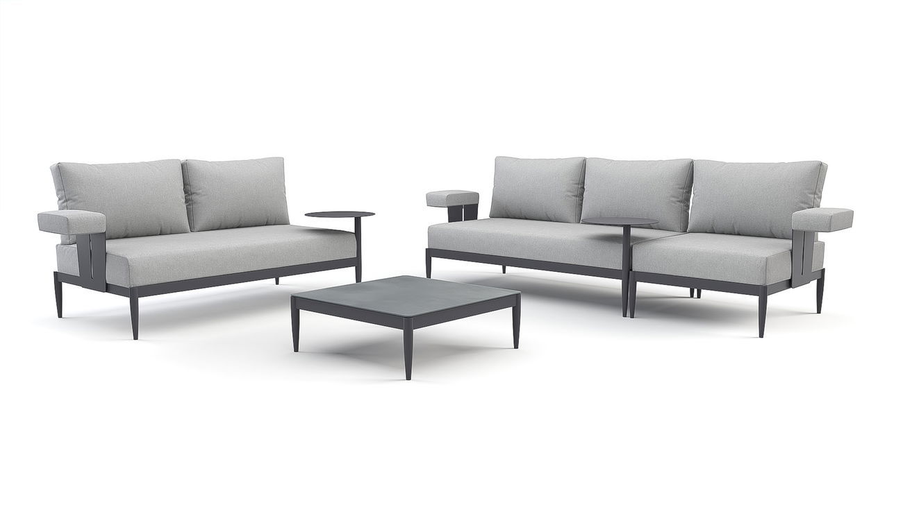Willkommen in Ihrem neuen Außenparadies mit der Sitzgruppe "Big Alina". Die Kombination aus unserem beliebten Sofaset "Alina" und einem zusätzlichen bequemen Sessel/Hocker schafft eine großzügige Sitzfläche für Sie und Ihre Gäste. Das pulverbeschichtete Aluminiumgestell in Anthrazit und die mondgraue Polsterung passen perfekt zu jeder Outdoor-Gestaltung und sorgen für den gewünschten Komfort. Die abnehmbaren und waschbaren Polster ermöglichen eine leichte Reinigung und sorgen für eine dauerhafte Freude an Ihrer Sitzgruppe.