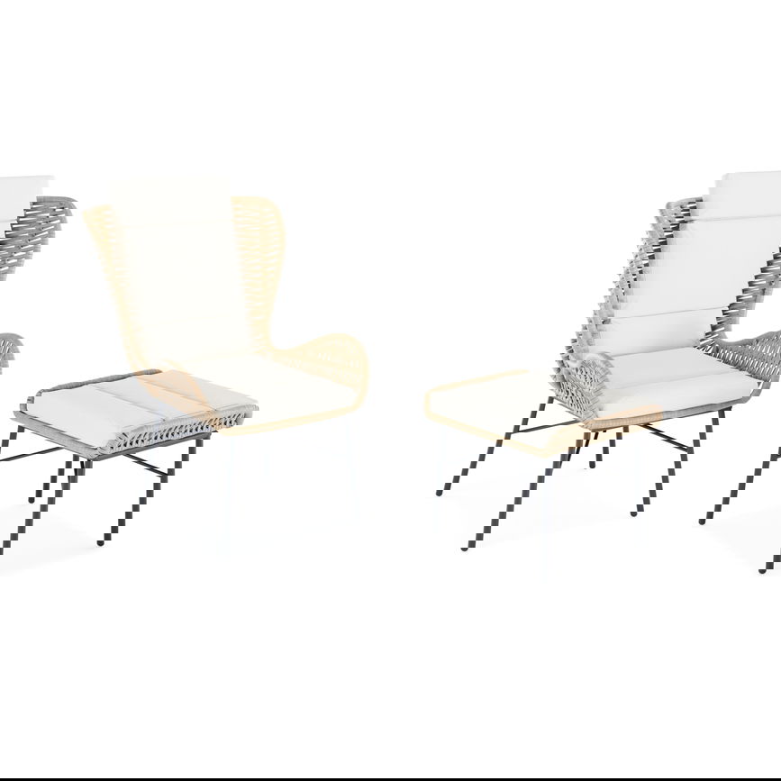 Premium Materialien Das Set besteht aus hochwertigem, 100% handgeflochtenem Polyrattan, das angeraut und wasserfest ist. Die durchgefärbte, einfarbige Oberfläche in strahlendem Weiß sorgt für eine zeitlose Eleganz. Der Bezug aus robustem Olefin ist vorimprägniert und bietet hohe Festigkeit sowie Langlebigkeit.