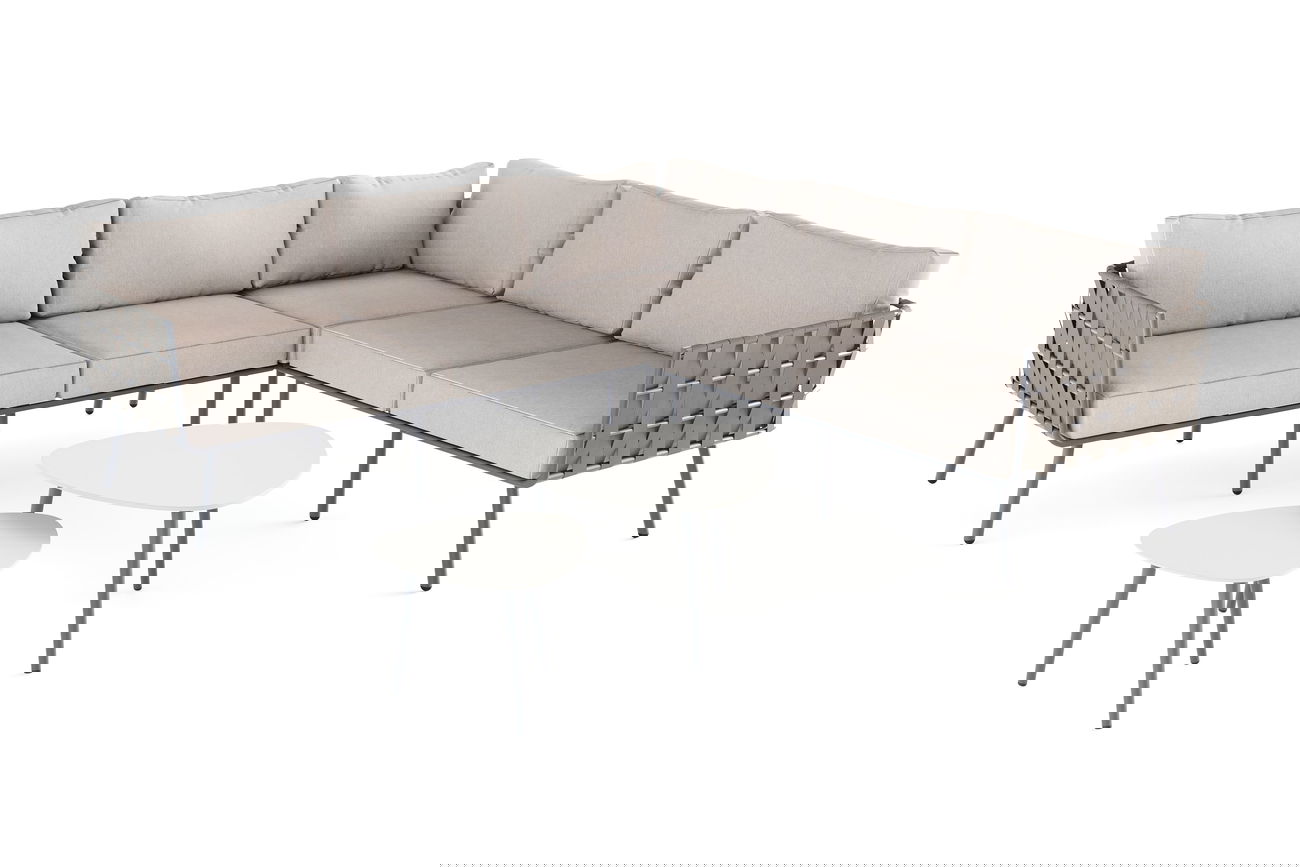 Farbe graubraun Kissen & Auflagen hoher Sitzkomfort2, 12 cm dicke Sitzauflagen, Schaumstoff, dicke Rückenpolster, Kunstfaser Gewicht Sitzgruppe ca. 40 kg Material Aluminium, Rope Montage Montage erforderlich Tischplatte Aluminium2, matt2, seidengrau, Stärke 4 mm, pulverbeschichtet Lieferumfang 2x Loungetisch, 1x Ecksofa, 1x Abschlußsofa links, 1x Abschlußsofa rechts Sitzplätze bis zu 5 Obermaterial 100% handgeflochten, einfarbig, durchgefärbt, schnell trocknend, 100% Olefin Seil, Farbe: graubraun, 50 mm breit Gestell Aluminium, pulverbeschichtet, robust, rostfrei, wetterbeständig, Stärke bis zu 1,5 mm Bezug beige, 100% Olefin, abnehmbar, waschbar bei 30°C, robuste Verarbeitung, hohe Festigkeit, verdeckte Reißverschlüsse, mehrfarbig, vorimprägniert, durchgefärbt Eigenschaften Traglast bis zu 120 kg pro Sitzplatz, wetterbeständig, pflegeleicht SKU 23515 Sicherheitshinweise