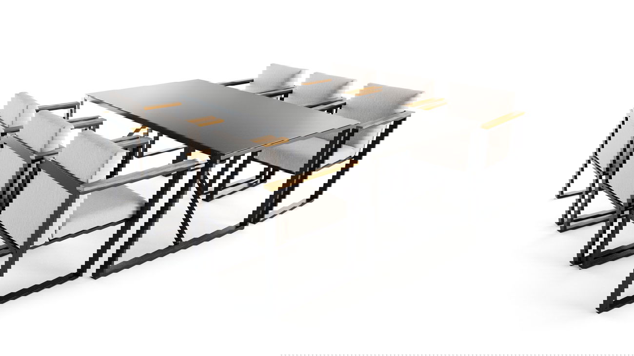 Das pulverbeschichtete Aluminiumgestell in edlem Anthrazit verleiht der Matoyo Dining Gruppe eine moderne, kubische Eleganz.