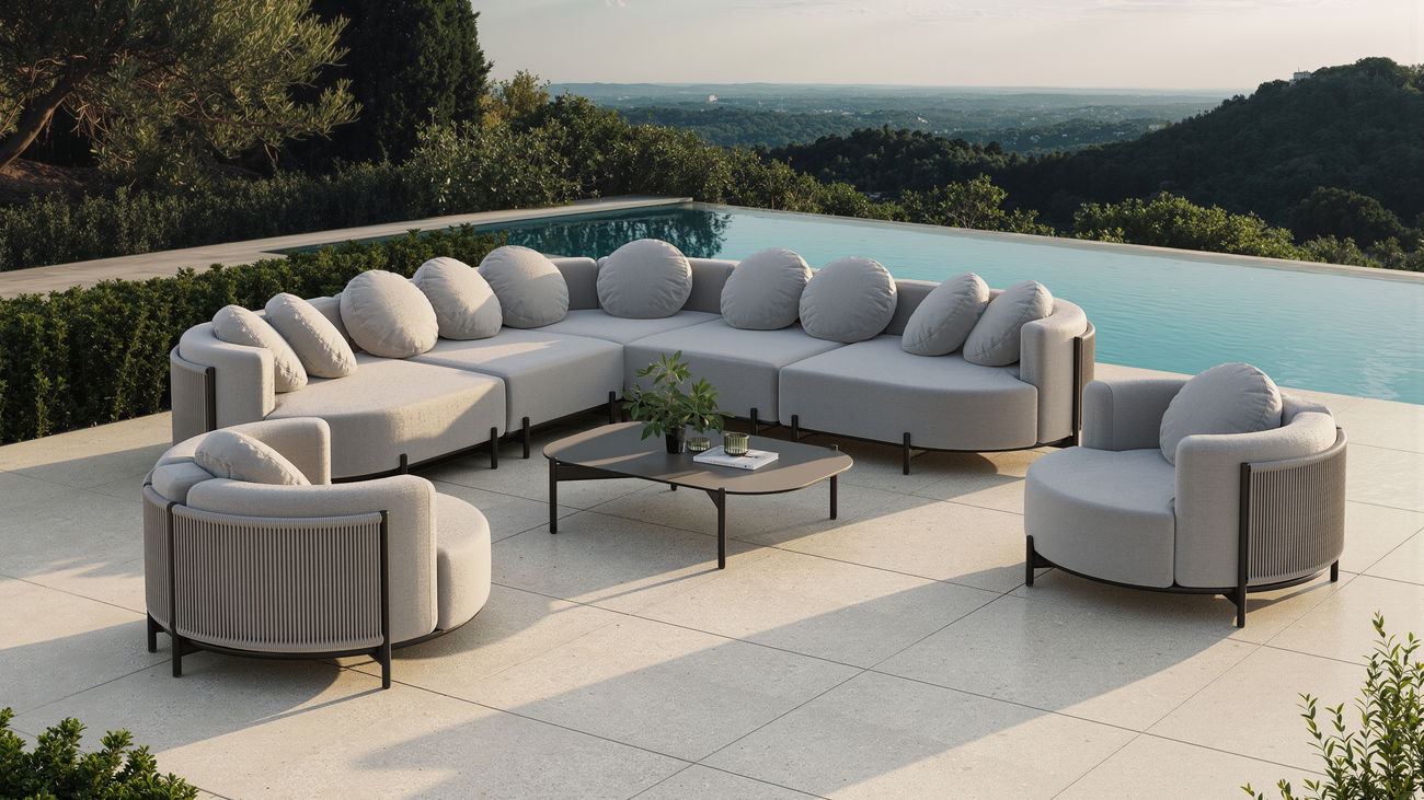 Die Sunday Lounge Max inszeniert Gelassenheit mit architektonischer Präzision. Ihre sanften Kurven, das modulare Konzept und das harmonische Zusammenspiel von Textur und Linie schaffen ein Möbelensemble, das Raum öffnet statt nur füllt. Ein Ausdruck moderner Ästhetik, inspiriert von Leichtigkeit und Balance.